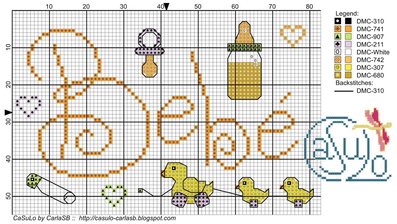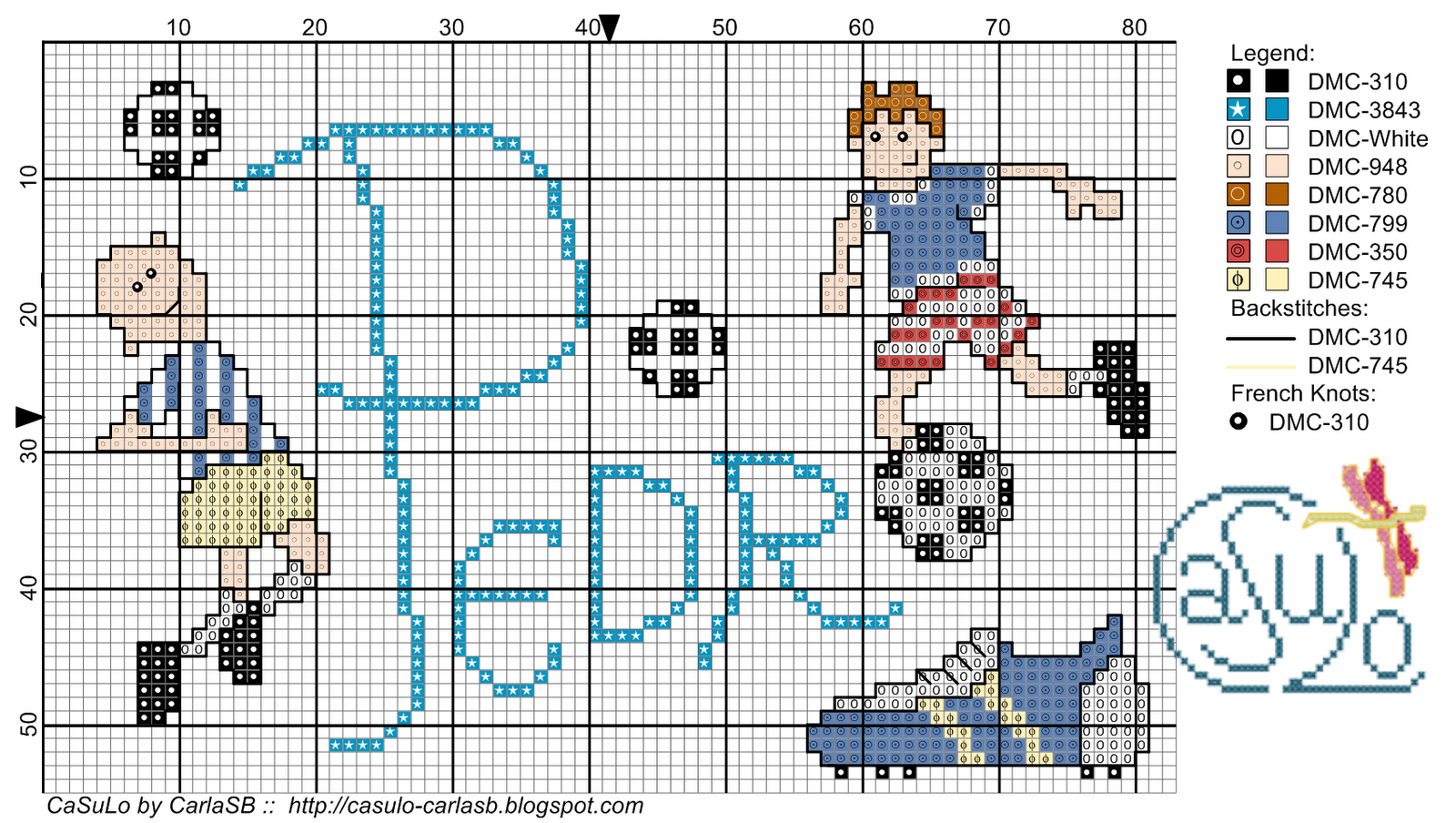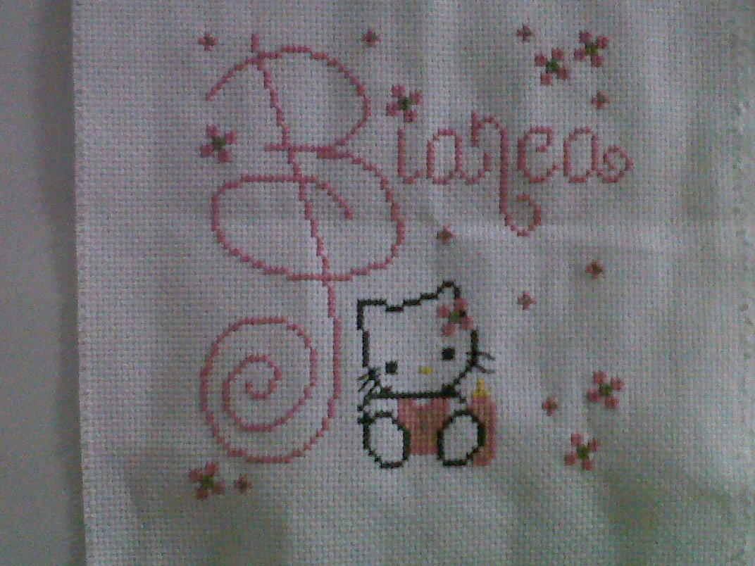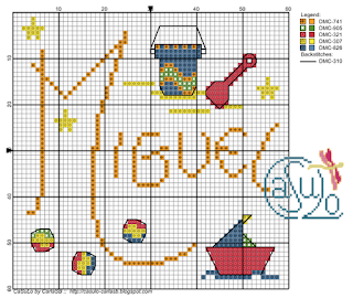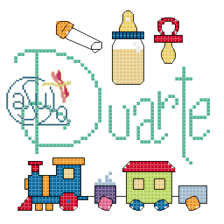 O nome Lourenço anterior não cabia no quadrilé duma fralda, pelo que fica aqui nova versão para esse mesmo fim. Com 60x60 pontinhos, ideal para fraldas ou babetes redondas.