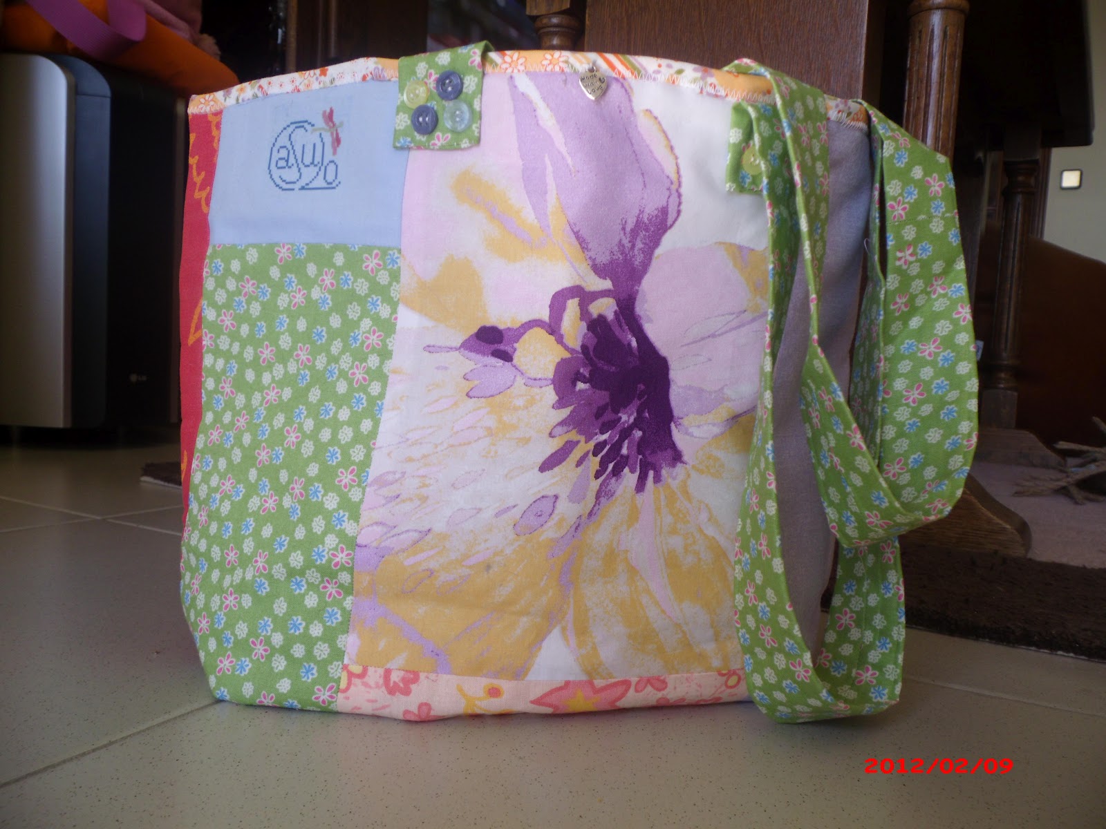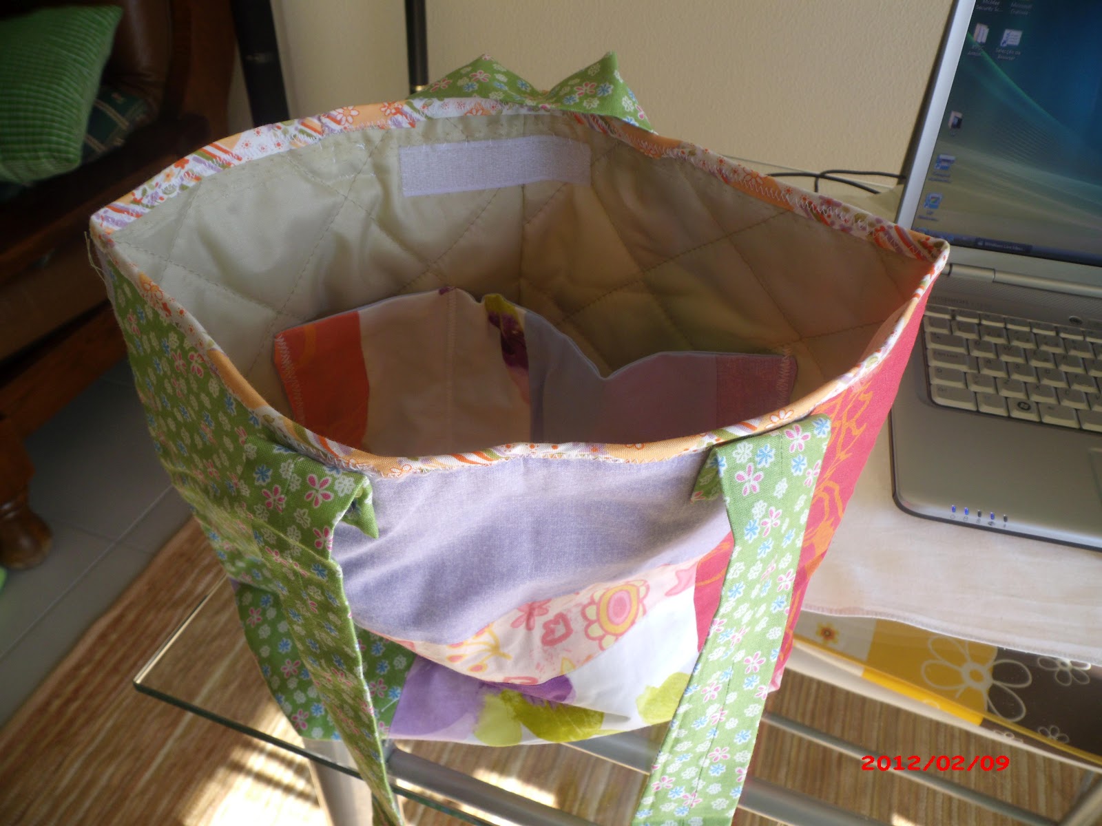 Um pouco diferente das que costumo fazer, pois foi inspirada num saco maior de transporte de materiais que tinha feito para uma troca, tive de adaptar alguns pormenores, enfim, adorei faze-la e a experiência!