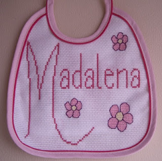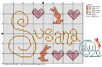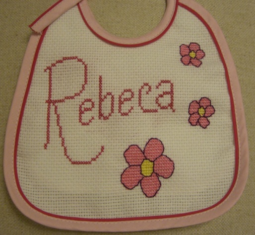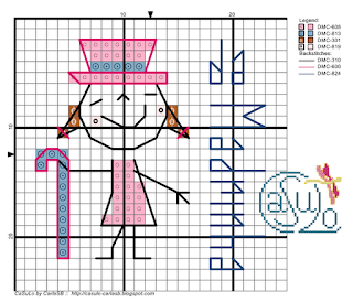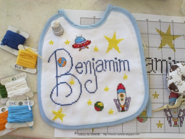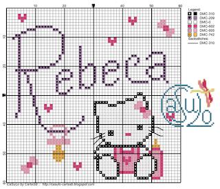 A Sara pediu-me o nome, eu desenhei, ela já bordou... e cá está o resultado juntamente com o gráfico!Ficou muito fofo, a Bárbara vai andar toda catita!