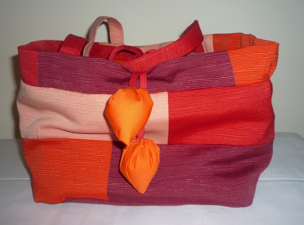 - pregadeira a condizer, realizada com os restos do tecido, pode ser usada separadamente ou a enfeitar a malinha.