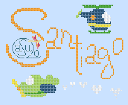 Para um menino Santiago! Para bordar em tecido azul bébé.
