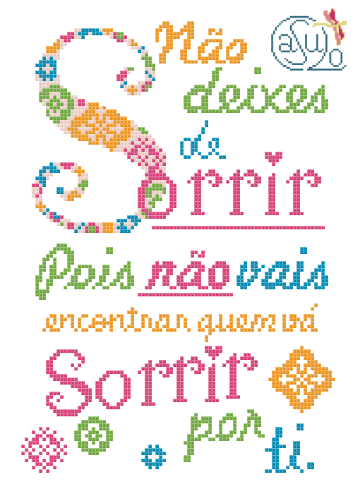 Aqui fica o resultado, para quem mais quiser escrever com agulha e linha esta frase tão bonita!