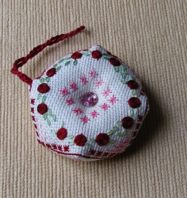 No grupo SALgadeira fizemos uma troca de biscornuts, eu fiz este bem delicado, para alguém que faz trabalhos maravilhosos e sempre tão elegantes. espero ter estado à altura!