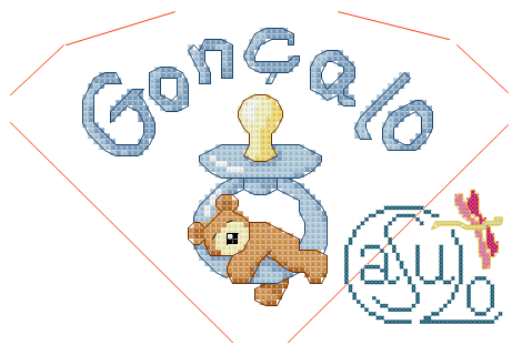 Para o quadro do Rubem, escolhi um desenho do ursinho Pooh (adaptação dum alfabeto de revista).