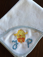 Desta vez mostro-vos o que fiz nos últimos tempos. A bolsinha de bordados e o coelhito foi para oferta a uma amiga Salgada na troca de Páscoa. As toalhas em conjunto são para guardar e servir as visitas que fiquem instaladas lá em casa... é bom conviver com amigos e faço por recebe-los com o carinho que merecem. A toalha do Guilherme foi feita antes dele nascer... e enviada no dia D! Deve ter pensado na fofura que ia a caminho e resolveu ver melhor como seria estar envolvido em felpo fofinho e tão bem bordado... hehhehehee |